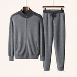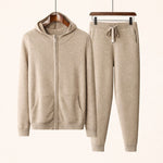 An elevated casual essential designed for comfort and sophistication. This luxurious set features a soft knitted hoodie with zip closure paired with relaxed-fit trousers, crafted from a premium cashmere-blend fabric.
